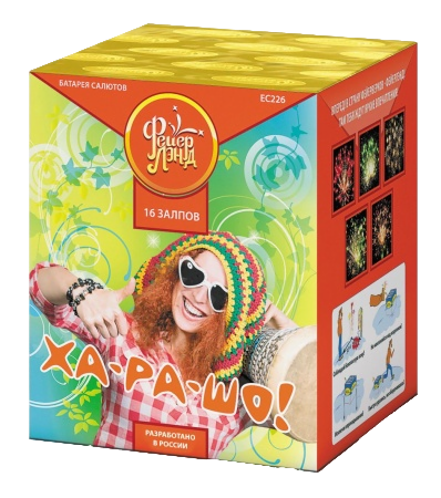 4 эффекта:1. Красная сфера (пион) и облако трещащих разрывов (трещащий дождь). 2. Зеленая сфера (пион) и облако трещащих разрывов (трещащий дождь). 3. Синяя сфера (пион) и облако трещащих разрывов (трещащий дождь). 4. Красно-желтая сфера (пион) и облако трещащих разрывов (трещащий дождь).
