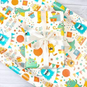 Бумага упаковочная глянцевая «Динозаврик», 70 × 100 см , 1 шт.