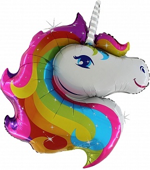 Г Фигура Голова Радужный Единорог Голография 32''/81 см.