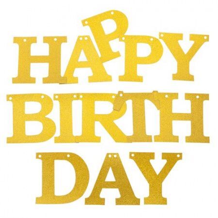Гирлянда Happy Birthday Золото с блестками 15*180 см.