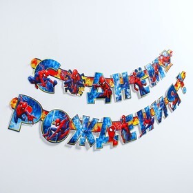 Гирлянда на люверсах "С Днем рождения!", длина 218 см, Человек-паук