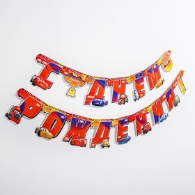 Гирлянда на люверсах "С Днем рождения!", длина 218 см, Тачки