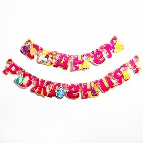 Гирлянда на люверсах "С Днем Рождения!", длина 219 см, Принцессы