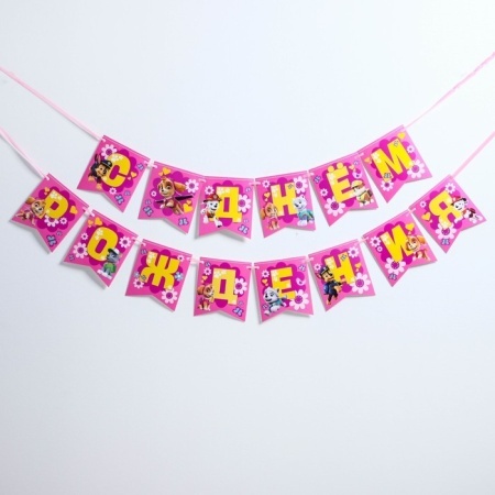 Гирлянда на розовой ленте СДР Щенячий патруль 215см.