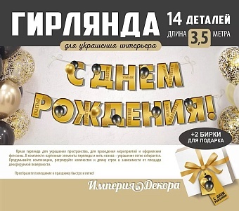 Гирлянда С Днем Рождения! (воздушные шары), Золото, 350 см.