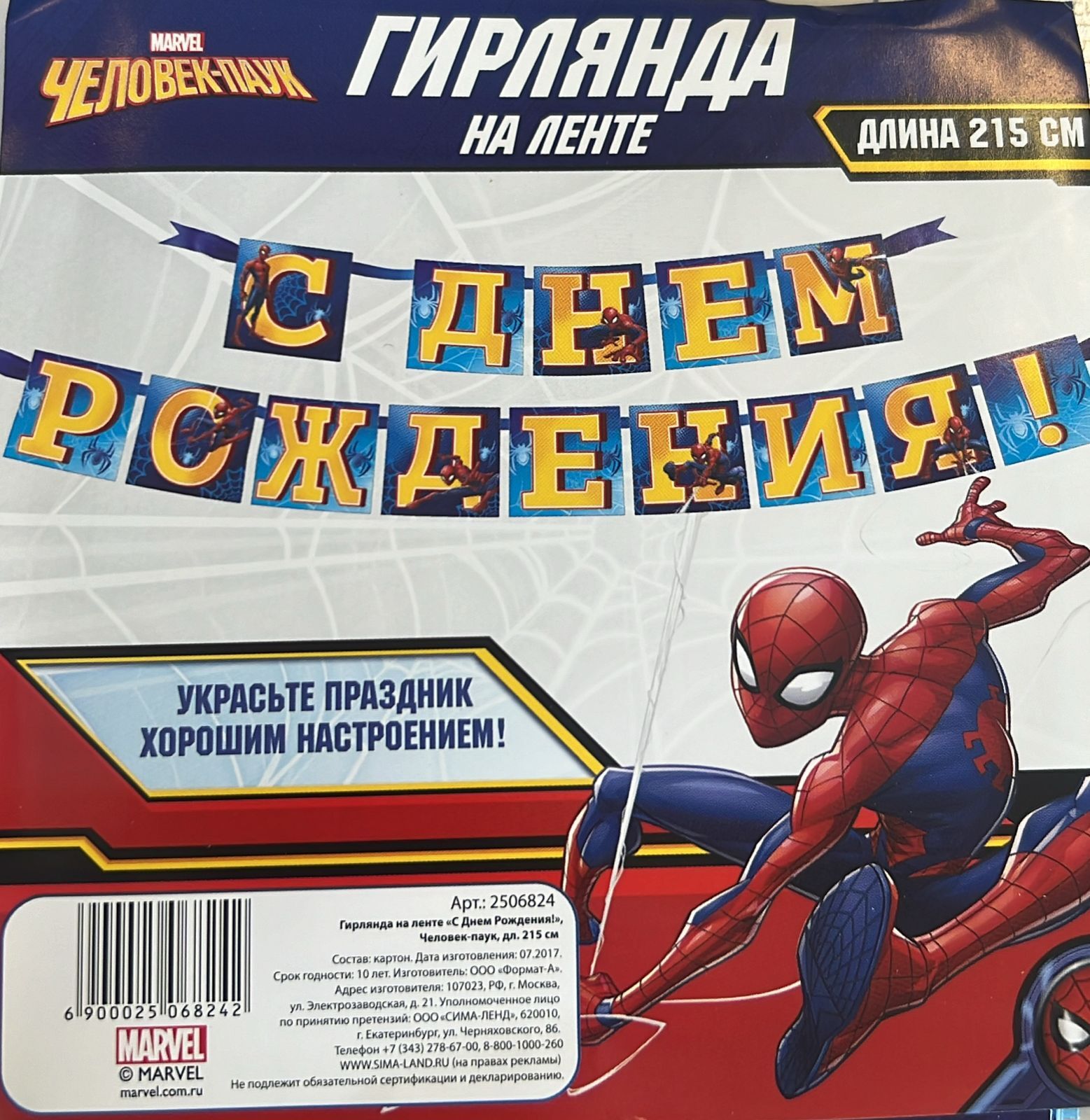 Гирлянда СДР Человек Паук на синий ленте квадраты 215см.