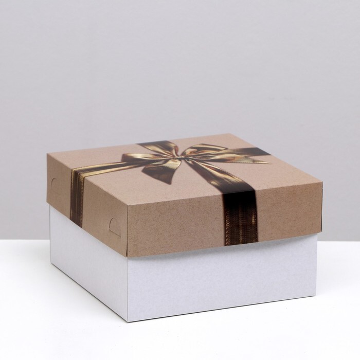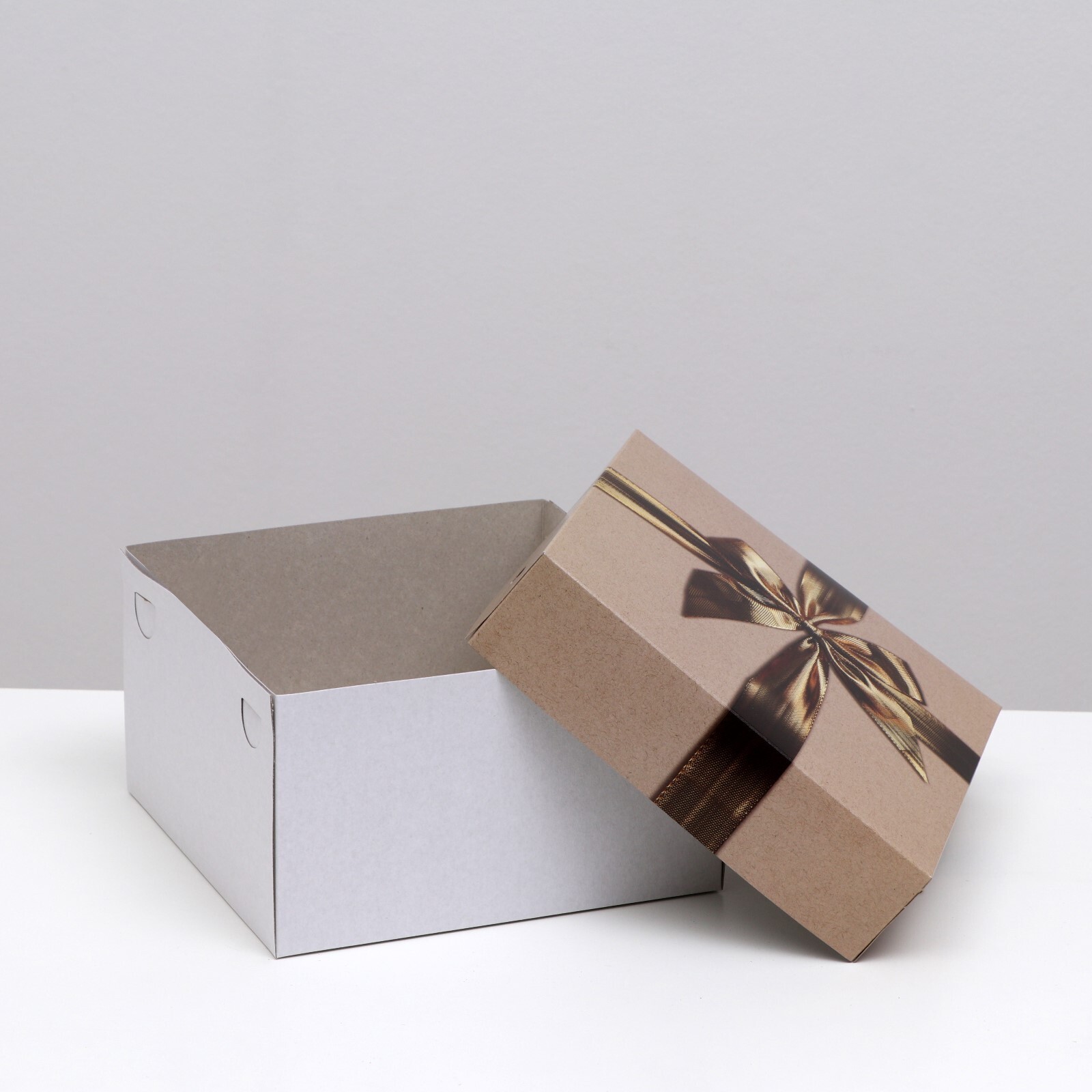 Коробка для торта "Золотой бант", 21,5 х 21,5 х 12 см, 1 кг