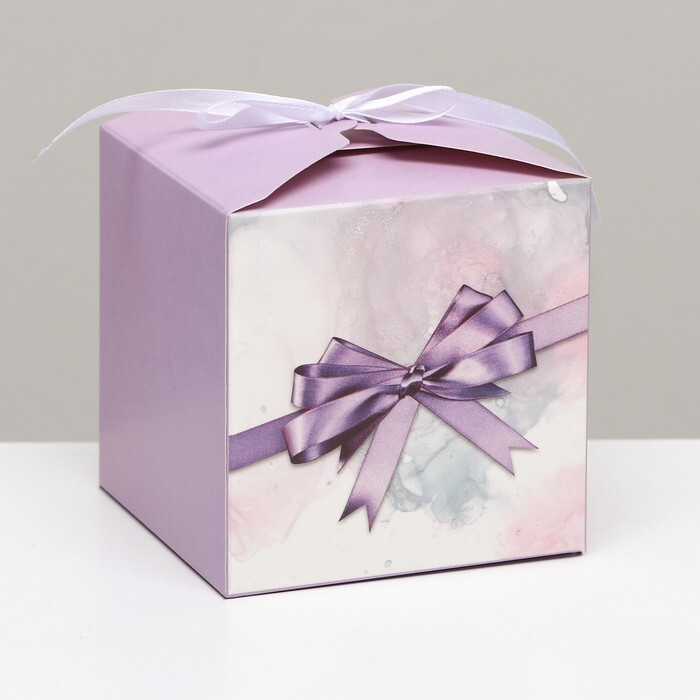 Коробка складная, подушка квадратная, "Фиолетовый бант" 10 х 10 х 10 см,