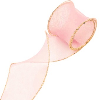 Лента декоративная (4 см*9,14 м) Органза с леской Золотая кайма Розовый