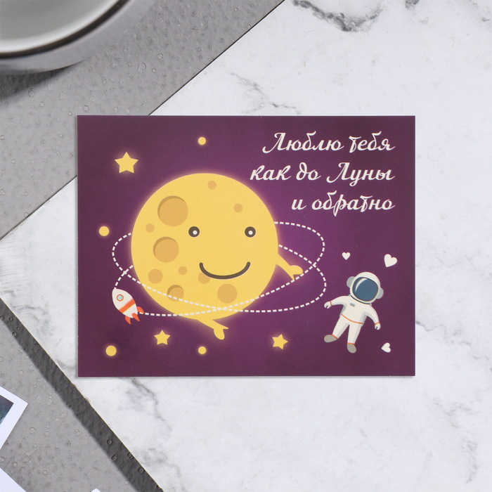 Мини-открытка "Люблю тебя как до Луны и обратно" луна, 7х9 см