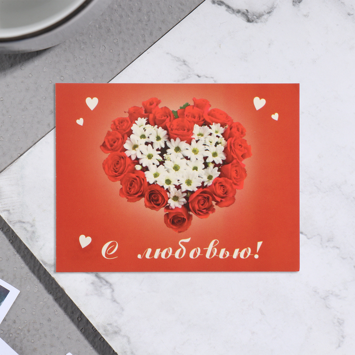 Мини-открытка "С любовью!" красные и белые цветы, 7х9 см