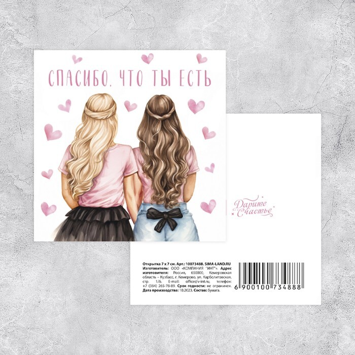 Мини-открытка «Спасибо, что ты есть», подруги, 7 х 7 см