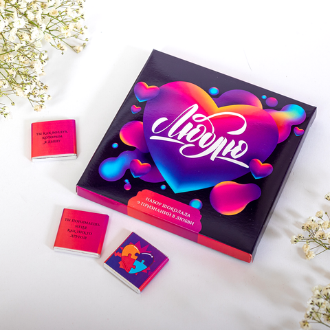 Набор 9 шоколадок "Люблю" (сердце градиент)