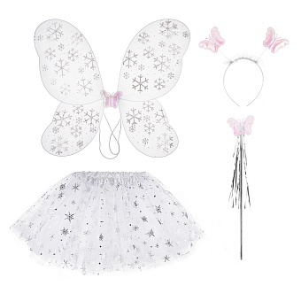 Набор (ободок, крылья, юбочка, волшебная палочка), Фея Снежинка, Белый, 47*38 см, 1 шт.