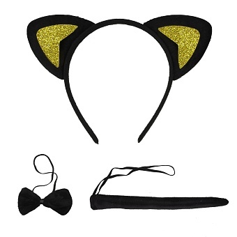 Набор (ушки, бантик, хвостик) Котик Черный/Золото с блестками