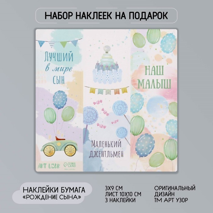 Наклейка бумага «Рождение сына», 3×9 см, лист 10×10 см.