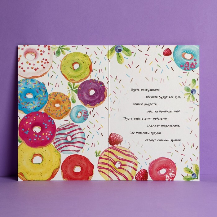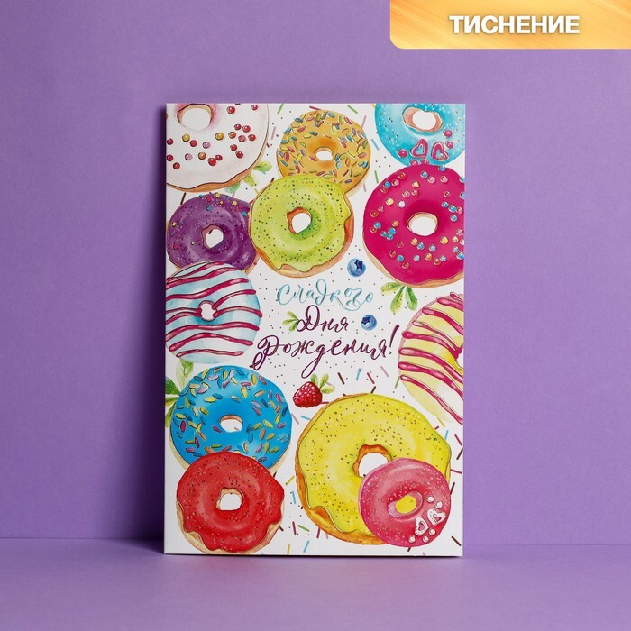 Открытка «С Днем Рождения», пончики, тиснение, 12 × 18 см