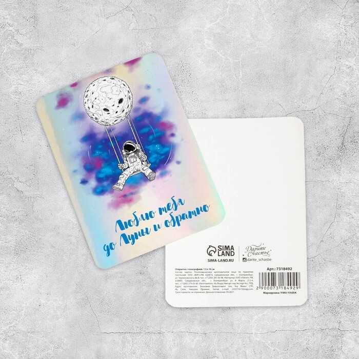 Открытка с голографией «Люблю тебя», 7,5 × 10 см