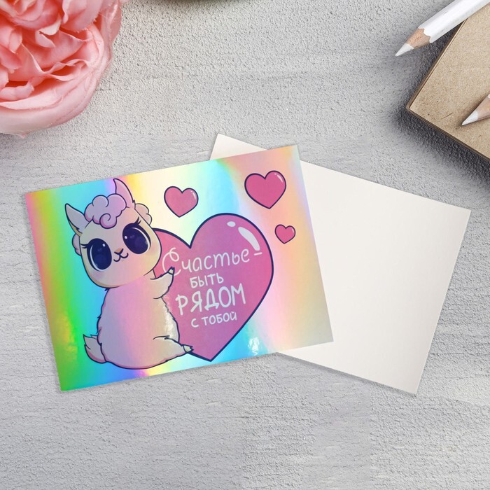 Открытка-валентинка с голографией «Счастье быть рядом с тобой», 7,5 х 10 см