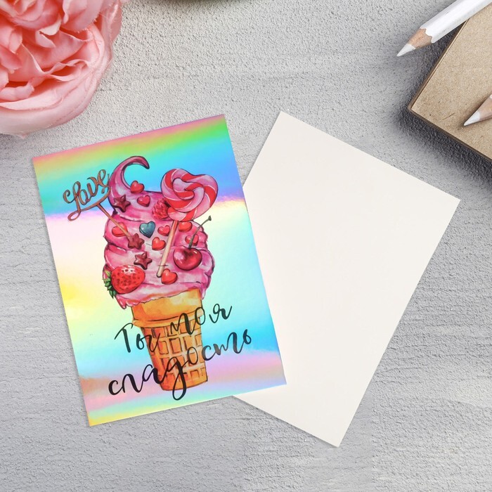 Открытка-валентинка с голографией «Ты моя сладость», 7,5 х 10 см