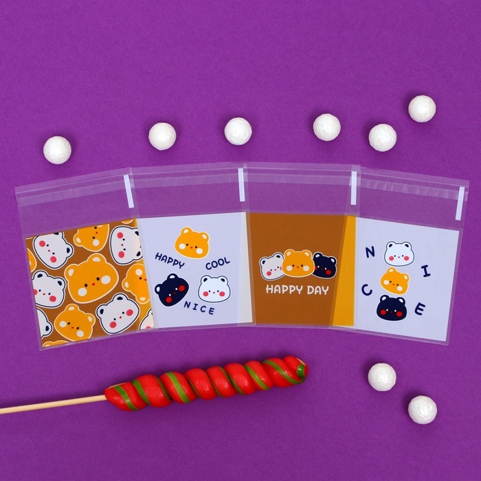Пакет БОПП с липкой лентой, "Котики", 7*7+3см