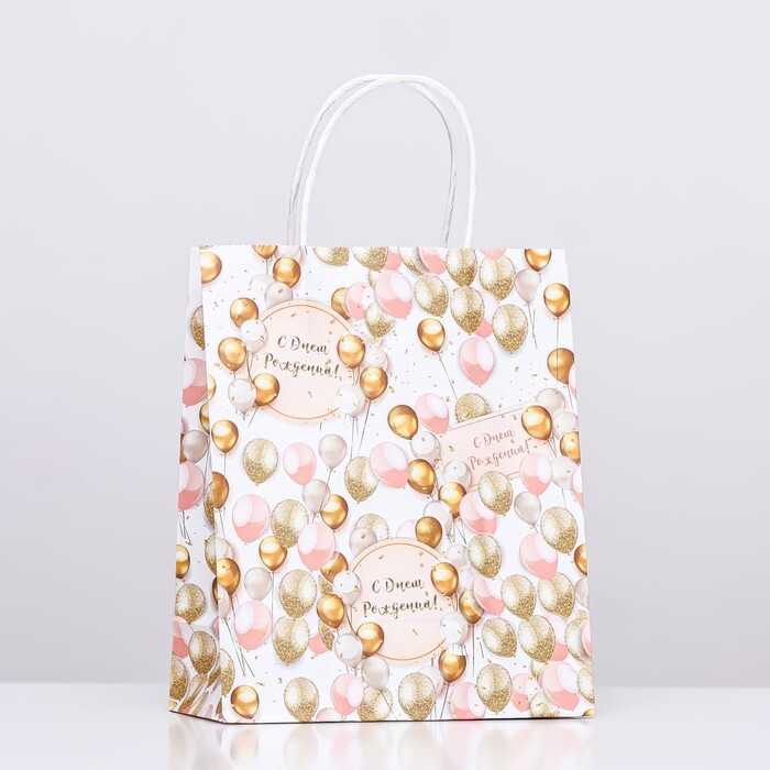 Пакет крафт "Праздничные шары", 22 х 12 х 27 см
