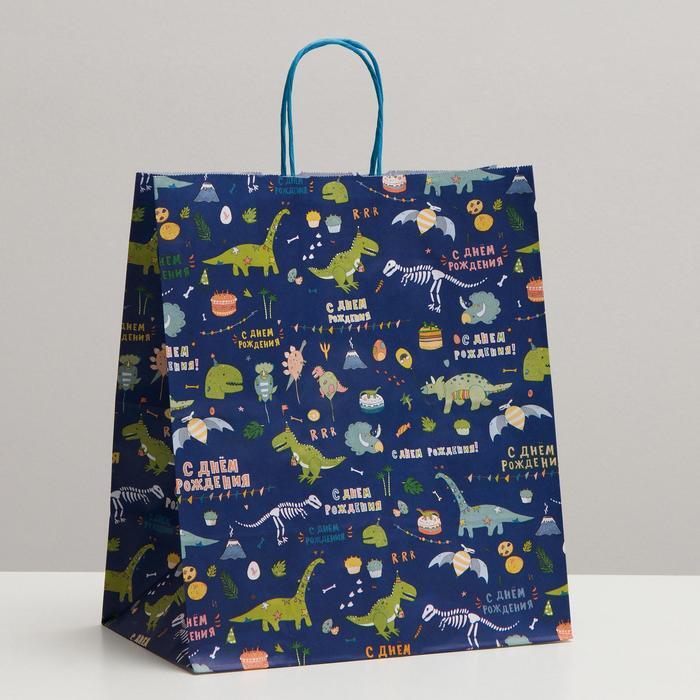 Пакет крафт "С днём рождения!", 32 х 19,5 х 37 см