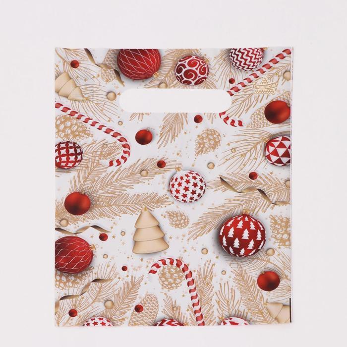 Пакет "Красные шарики", полиэтиленовый с вырубной ручкой, 19 х 25 см.
