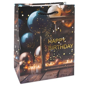 Пакет подарочный, Фееричный день рождения, Дизайн №1, Металлик, 23*18*10 см