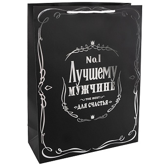Пакет подарочный Лучшему Мужчине Черный Металлик 16*12*7 см.