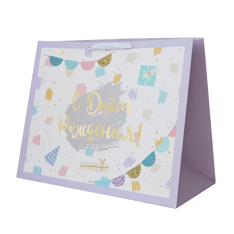 Пакет подарочный "С Днем Рождения" Макаронс Сиреневый с тиснением / 50*40*25 см.