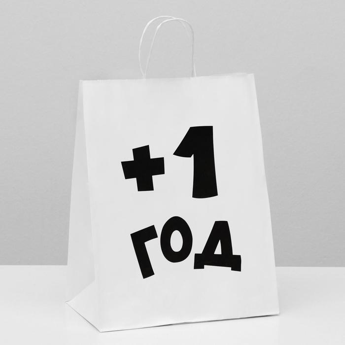 Пакет подарочный с приколами, крафт «Плюс один год», белый, 24 х 14 х 30 см