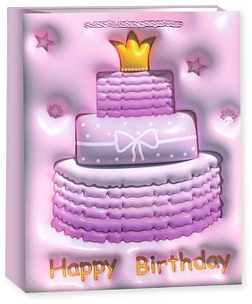 Пакет подарочный, Сладкий тортик, Дизайн №3, Сиреневый, 32*26*12 см, 1 шт.