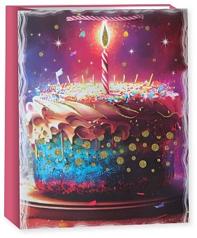 Пакет подарочный Торт на День Рождения Дизайн №2 с блестками 24*18*8,5 см.