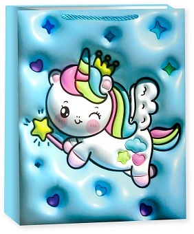 Пакет подарочный, Зефирный единорог, Дизайн №4, 32*26*12 см, 1 шт.