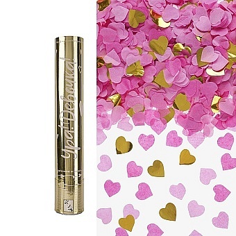 Пневмохлопушка (12/30 см), Гендер Пати, Ура, Девочка!, Сердца фольга и тишью, Розовый/Золото