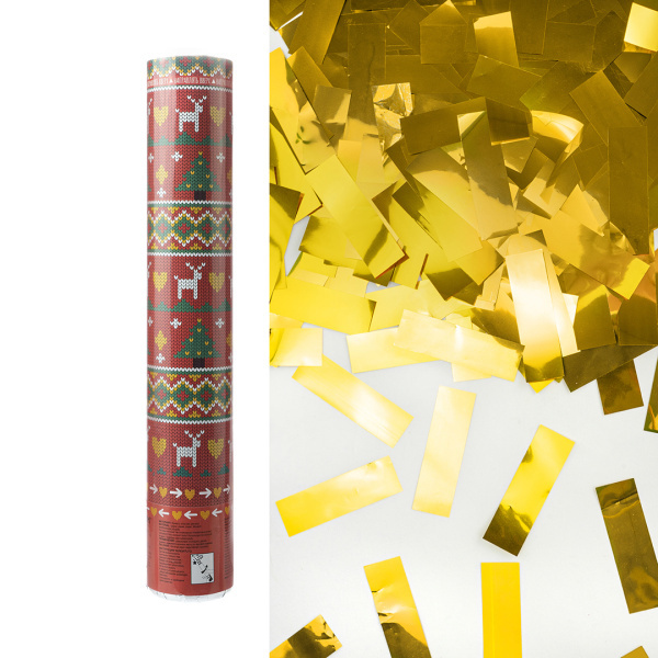 Пневмохлопушка (12/30 см), Новогоднее настроение, Прямоугольники фольга, Золото, Металлик
