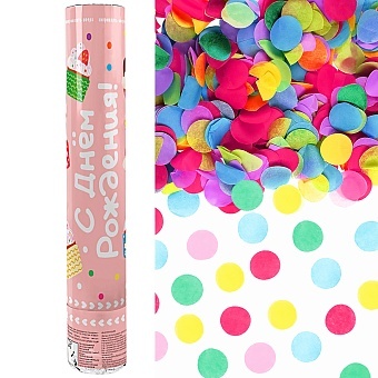 Пневмохлопушка (12/30 см), С Днем Рождения! (кексики), Круги тишью, Ассорти