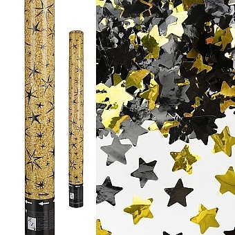 Пневмохлопушка (24/60 см), Звездные искры, Звезды фольга, Золото/Черный