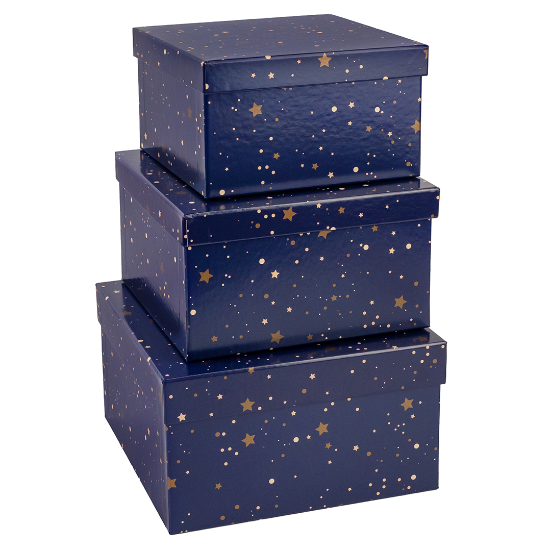 Подарочная коробка Звездная ночь Темно-синий 15,5*15,5*9 см.