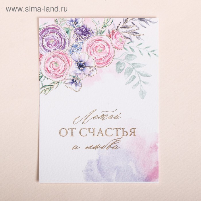Поздравительная открытка на акварельном картоне с тиснением «Летай от счастья», 7,5 х 10,5 см