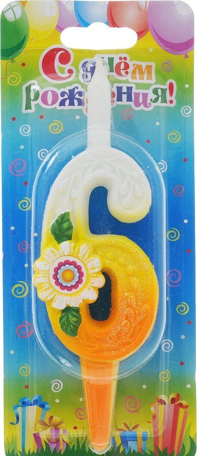 РАСПРОДАЖА Свеча Цифра 6 Подсолнух
