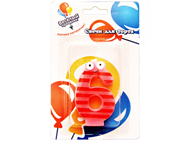 РАСПРОДАЖА Свеча Цифра 6 Веселые глазки