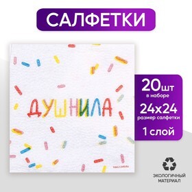 Салфетки бумажные однослойные «Душнила», 24 × 24 см, в наборе 20 шт.