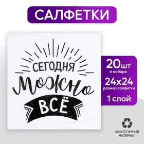 Салфетки бумажные «Сегодня можно всё», однослойные, 24х24 см, набор 20 шт.