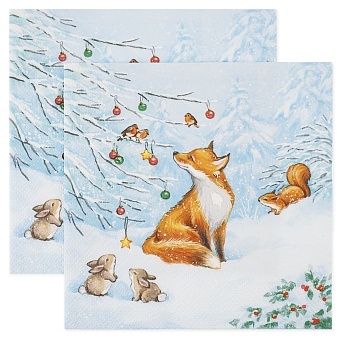 Сервировочные салфетки, Лисичка в зимнем лесу, 33*33 см, 20 шт.