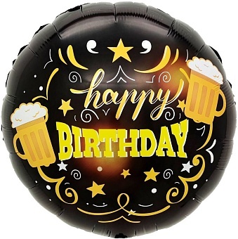 К 18'' Круг Happy Birthday (кружки пива) Черный 40 см.