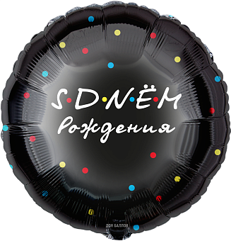 К 18'' Круг С Днем Рождения Черный 40 см.
