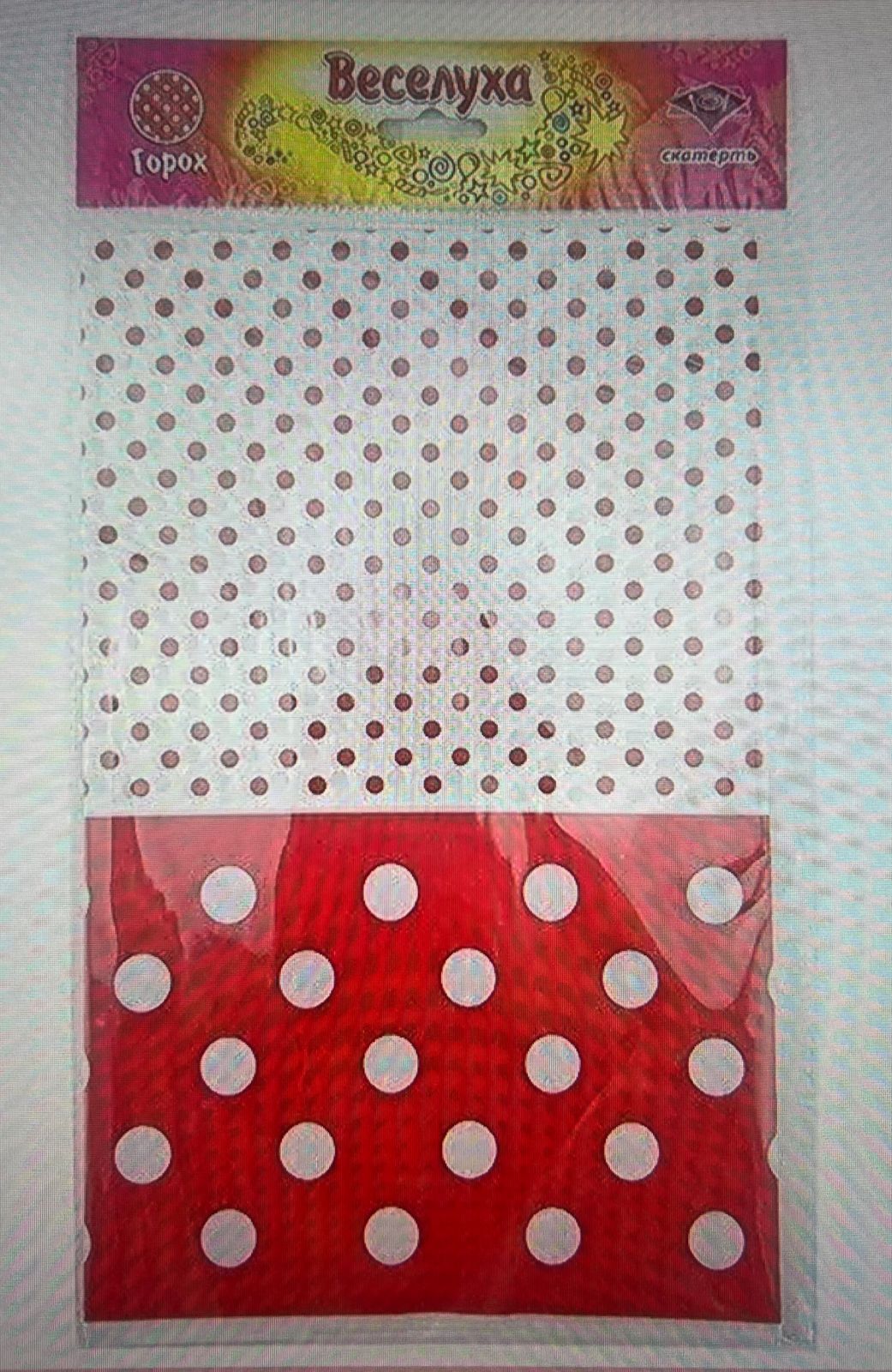 Скатерть горох былей на красном мелкий и крупный 108*108см.