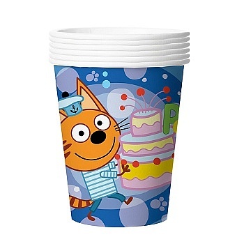 Стаканы Три Кота, С Днем Рождения!, Синий (250 мл) 6 шт.
